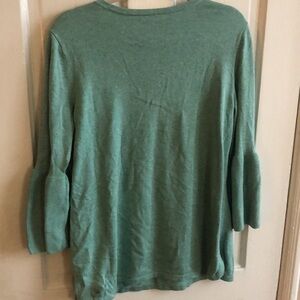 H By Halston V Neck 3/4 Bell Sleeve Blue Light Knit Sweater Top Large