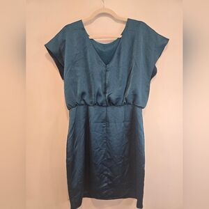 Chic teal mini dress by Trina Turk. Features a relaxed fit and elegant drape. Ideal for stylish outings. Size 10, nwt. Absolutely beautiful dress.
