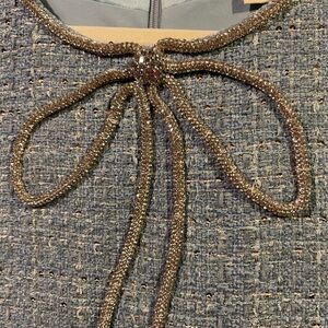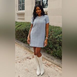 Step out in style with this elegant blue tweed dress. Perfect for any occasion, this dress combines classic design with modern flair. The soft blue color adds a touch of sophistication to your wardrobe.