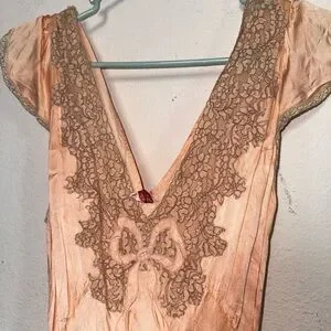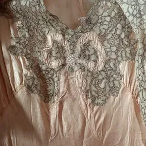 1930’s peach silk slip with bed jacket. Rare Bow design & flawless