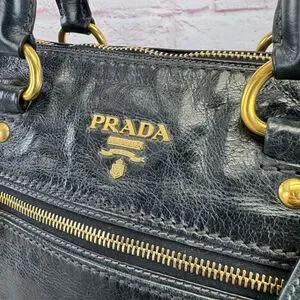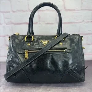 Authentic Prada Vitello Shine Leather East West Bauletto Bag