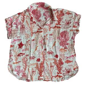 Jane & Delancey Cream/Red/Pink, Ocean Creatures, Short Sleeve Button Down- XL