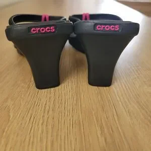 The CROCS Cabana Slip On Thong Wedge Heels Flip Flops Sandals in black rubber are a comfortable and stylish choice for women size 7. These mid heel sandals are perfect for casual occasions in the summer or spring, featuring arch support and a cushioned insole for added comfort. The slip-on style with a strap and logo accents, along with the solid black color, make them a versatile option for outdoor activities. The Crocs brand and rubber outsole add durability and a touch of nostalgia to these trendy sandals.