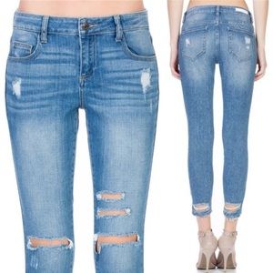 Cello Destroyed Ankle Cutout Skinny Cropped Jeans