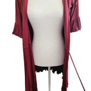 Karen Alexander Vintage wrap dress with ruffles, size S , dark Red Made in USA. True wrap. Karen Alexander for Boston Proper. Ballon sleeves .