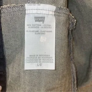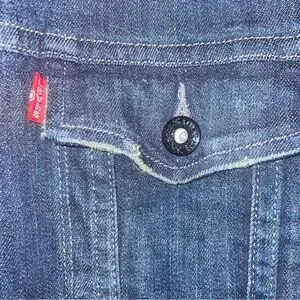 Classic Levi's denim jacket. Dark blue with button front. Timeless style.
