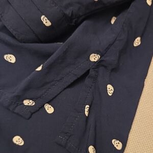 Hello. I'm listing some clothing. This listing is for a MNG collection Viscose Skull pattern blouse. Blouse is very nice and soft, no flaws. Very light weight and breathable. Look at last photos for an idea on measurements.