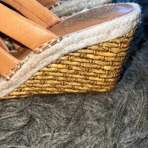 Women's Vince Camuto new leather uppers, peep toe rattan wedge heels, sz 6.5