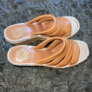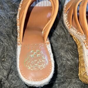 Women's new Vince Camuto leather, peep toe rattan, wedge heels, sandals, sz 6.5