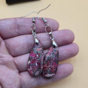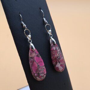 Silver Plated Over Copper Unique Jasper Stone Vintage Earrings A6022