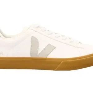Stylish Veja sneakers. White upper with tan accents. Perfect for casual wear.