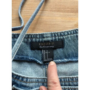 FOREVER 21 Women's Medium Wash Strappy Denim fitted overalls Jumpsuit Size S