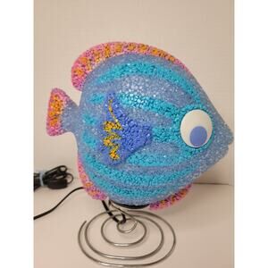 Bring a splash of retro charm to any room with this fantastic vintage fish night light lamp! Made from blue popcorn plastic, this piece has a whimsical look and feel. The lamp features bright blue, pink, and yellow detailing and a groovy, Mid-Century Modern vibe that's sure to stand out. It's in great working condition and perfect for a kids' room, a retro-themed space, or for anyone who loves unique lighting.