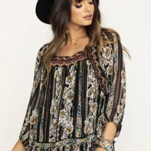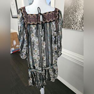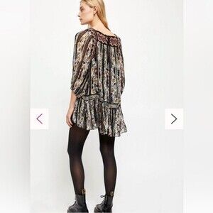 NWOT Free People Dance Magic Tunic Dress in black Size M chiffon embroidered with gold detailing