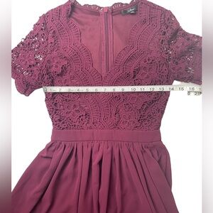 Lulus Dress Womens XS Burgundy Angel In Disguise Lace Skater Fit and Flare Mini