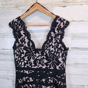 Tadashi Shoji Black Lace Overlay Cocktail Dress 16 Elegant Romantic Sheath