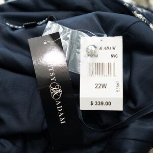 Turn heads in this Betsy & Adam Plus Foil Printed Mesh Gown, a timeless design that glimmers under the light with its metallic foil finish. The double V-neckline and long pleated-cuff sleeves add a refined touch, while the softly pleated empire waist defines the figure before falling into a flowing, floor-length sheath silhouette. Crafted from slightly stretchy mesh for comfort and movement, it’s fully lined and finished with a concealed back zipper. A beautiful choice for formal weddings, evening receptions, or holiday galas.