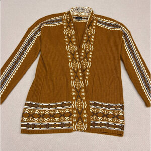 Lucky Brand Cardigan Sweater Womens Large Brown Fair Isle Ski Southwest Knit