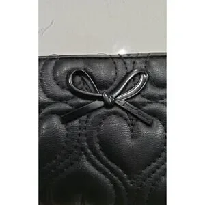 NWT Betsey Johnson black Kara wallet Quilted heart detail 7x4in zip closure glam