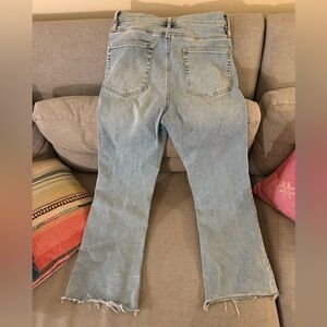 Chic sky blue jeans with a wide leg. Frayed hem adds a trendy touch. Ideal for everyday style. So stretchy and comfortable. In perfect condition.
