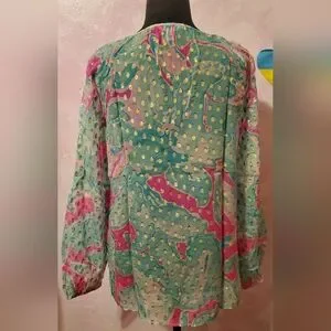 Chic top with pink and gold accents. Perfect for a stylish look.