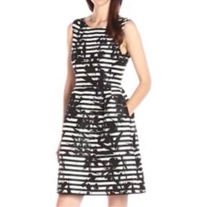 Vince Camuto striped floral black & white dress fit & flare style sleeveless side hidden pockets NEW without TAG great for many occasions from office date night formal wedding