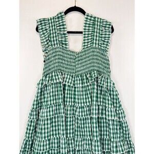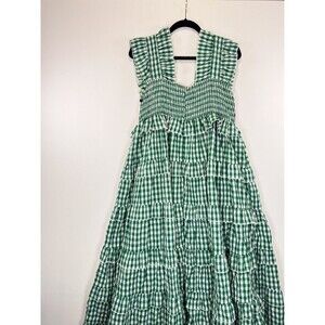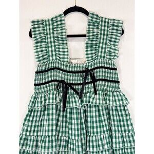 Dream Sister Jane Dress Green Roller Gingham Midi Tiered Ruffle Smocked Large