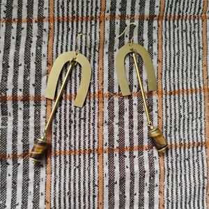 Tiger Eye Brass Statement Earrings