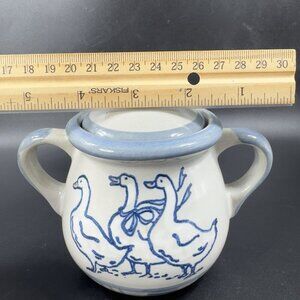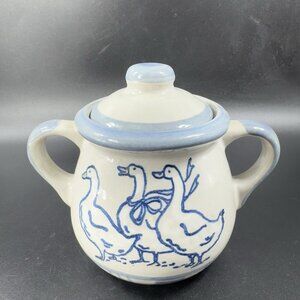 LOUISVILLE Stoneware Sugar Bowl Creamer Set Gaggle of Geese Pottery Set 2 USA