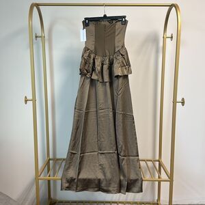 WeWoreWhat Strapless Corset Peplum Maxi Dress Brown 0