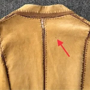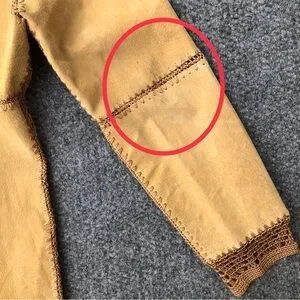 IDI by Mathew vintage leather suede patchwork crochet jacket size large, two front button closure, no pockets, back center vent/ slit