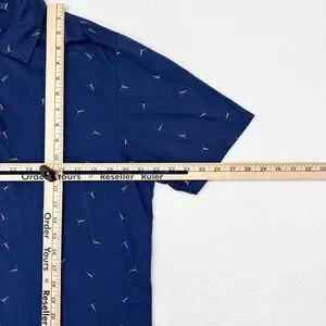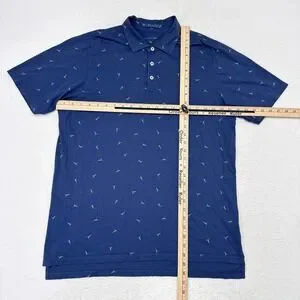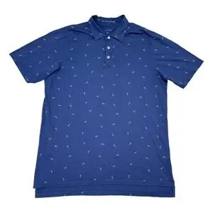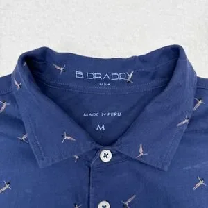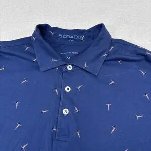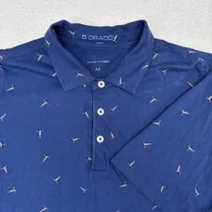 B Draddy Polo Shirt Mens Size Medium Blue Sunbathing Print Stretch Cotton Golf