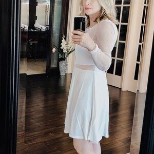 3/$36 Fit and flare dress mesh sleeves crew neck