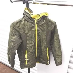 Stylish kids camouflage jacket featuring vibrant yellow accents. Perfect for outdoor adventures.