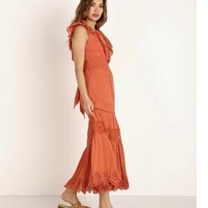 SPELL Daisy Chain Frill Maxi Dress in Copper Size XS
