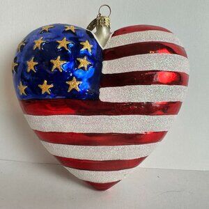 Christopher Radko Stars and Stripe 4" Heart Blown Glass Ornament American Flag