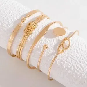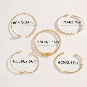 5pcs Trendy Vintage Style Bangle Set Stylish Geometric Cuff Bracelets Golden