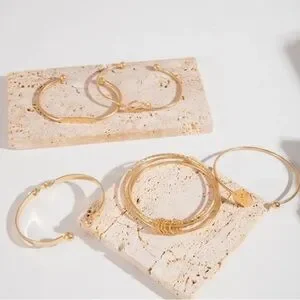 5pcs Trendy Vintage Style Bangle Set Stylish Geometric Cuff Bracelets Golden.