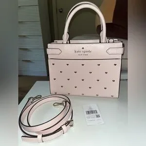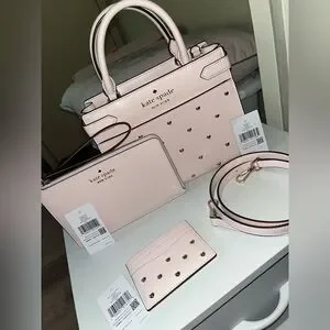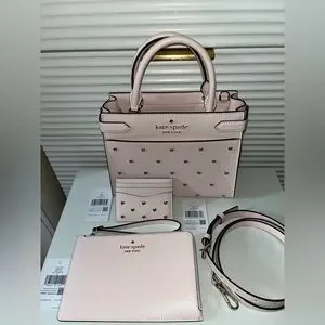 Kate Space Staci Heart Studded Satchel Bag with Cardholder and Wristlet