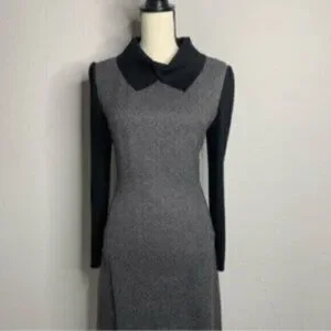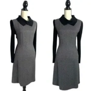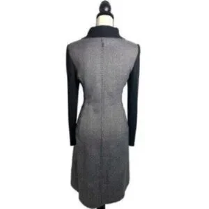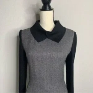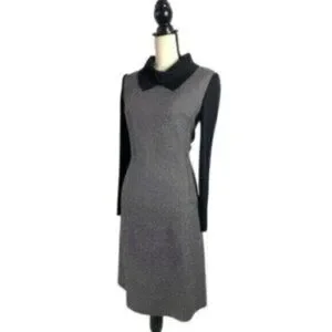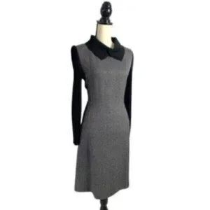 Vintage Tweed Wool Collared Knee Length Sheath Office Dress