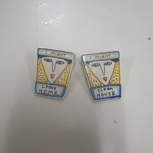 Ceramic pop art “ I might clean house or I might leave home collectibles Humor Fun Artsy Funky wearable Art