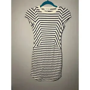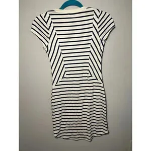 Monteau Cream Navy Stripe Bodycon Short Sleeve Dress Women's Size Small