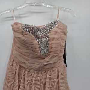 Trixxi Blush pink gown fully lined, zipper closure. Bra cups and elastic fitting give this dress a little room. Brand new with tags! Rosettes make this perfect for prom, weddings, or bridesmaid! Dress could easily be shortened and worn later for a different look. There are lots of options here! No slip grip on inside of the top helps keep this dress in place!
