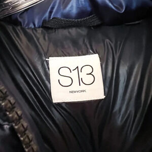 S13 Navy Duck Down Fill Classic Full Zip Winter Snow Puffer Coat Women's M