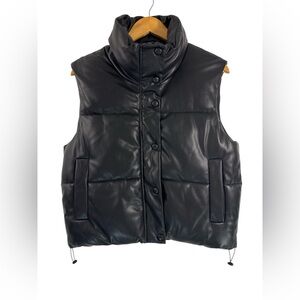 ZARA Faux Leather Puffer Vest Black Women’s Size M
