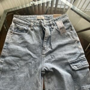 Trendy sky blue denim cargo 90’s boyfriend pants by PacSun. Features classic styling and a relaxed fit. New with tags.