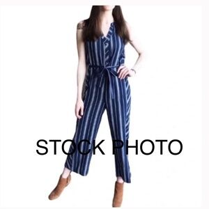 Laundry by Shelli Segal Jumpsuit Linen Blend Blue Striped Size 2
