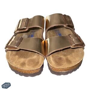 Birkenstock Women’s Metallic Copper Arizona BS Slip On Slide Sandals