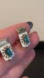 Unique vintage screw-back earrings featuring a gold tone finish, white enamel background on the crest, crown accent, and beautiful aquamarine colored rhinestones with an atomic design underneath. Measure 1” x 1/2” with secure backings. Excellent vintage condition.