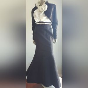 The stunning Oscar de la Renta black silk skirt and the white ruffle blouse is for sale in our other listings.